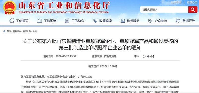 據了解,此次評審認定是為健全完善全省制造業優質企業梯度培育體系建設工作,深入推進產業基礎高級化和產業鏈現代化,根據《山東省關于加快培育發展制造業優質企業的實施意見》安排部署,經企業自愿申報、各市工業和信息化局推薦、限定性條件論證審核、行業審查、專家論證和網上公示,最終對評審認定結果進行公布。